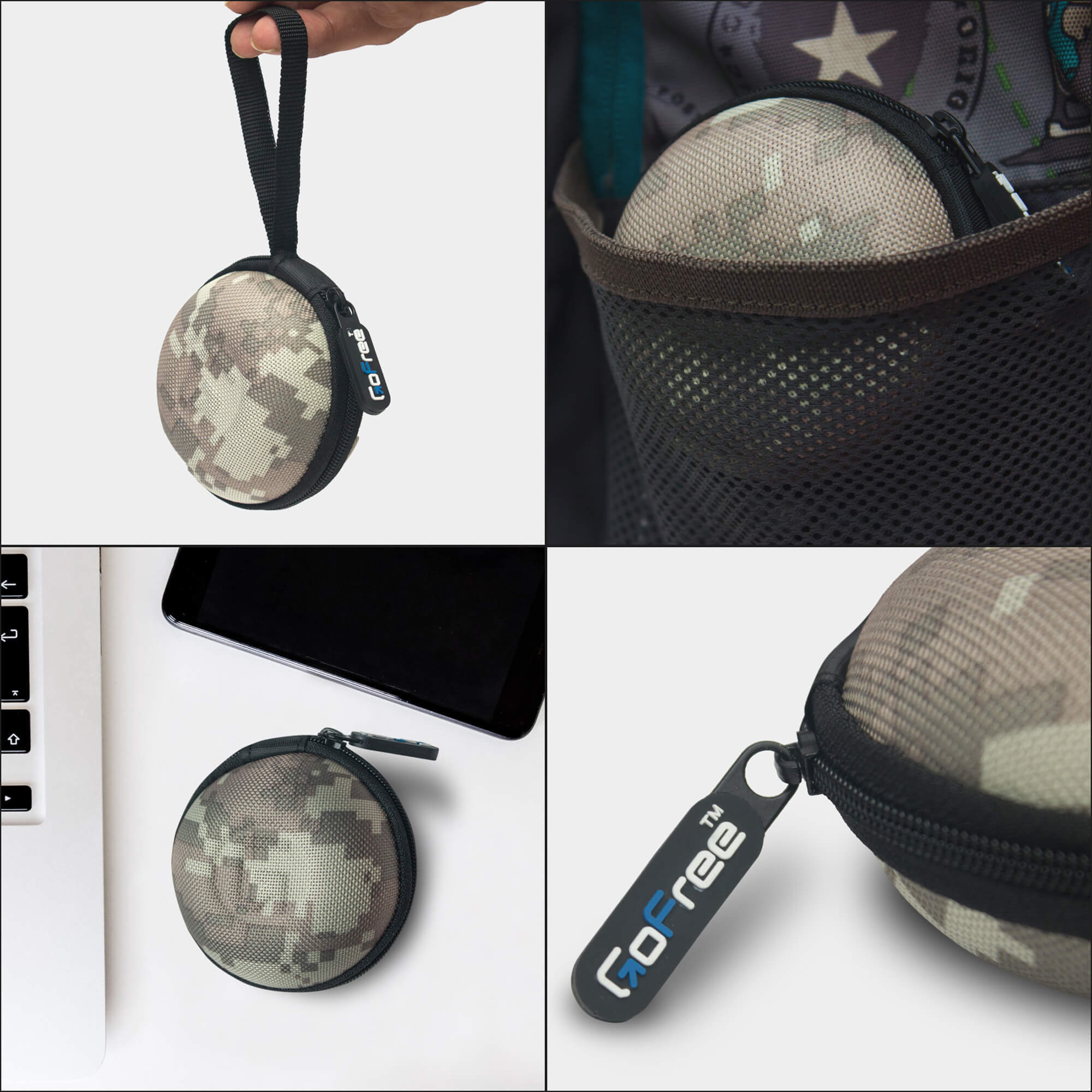 GoFree HeadPhone Case – For Large and Over-Sized Head Phones (Size: Large) GoFree Orb Multi Purpose Case for Earphones, Pen Drives, SD Memory Cards, Keys, Coins Etc. (Camouflage Grey)